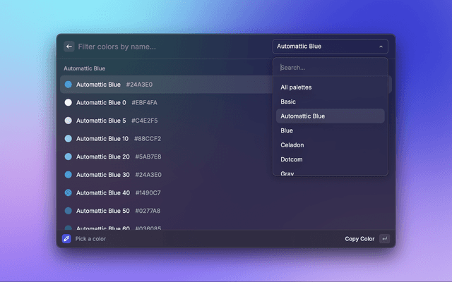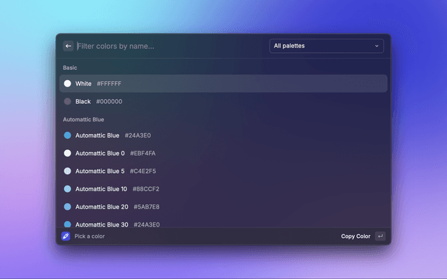 A Raycast extension that helps you identify and select colors from Automattic's Color Studio.