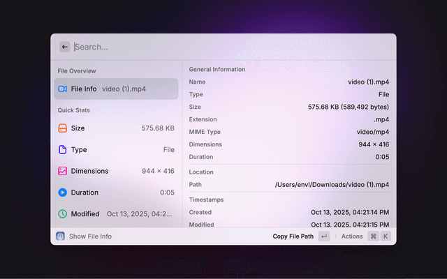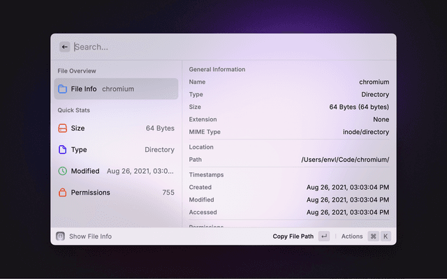 Quickly view metadata of the currently selected file or clear metadata for privacy.