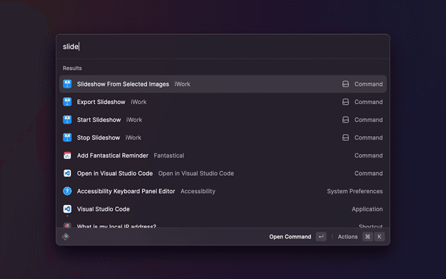 This extensions lets you control Pages, Numbers, and Keynote with Raycast.
