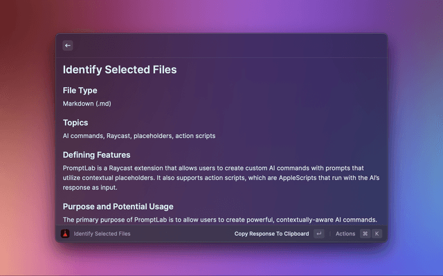 PromptLab is a Raycast extension for creating and sharing powerful, contextually-aware AI commands using placeholders, action scripts, and more.