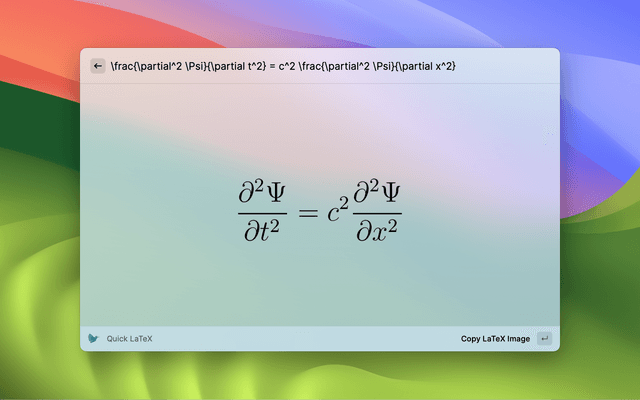 Converts LaTeX text to image. Copy the image to the Clipboard.