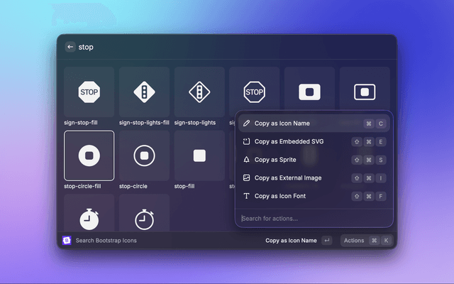 A simple extension for looking up, copying, and using Bootstrap icons through Raycast.