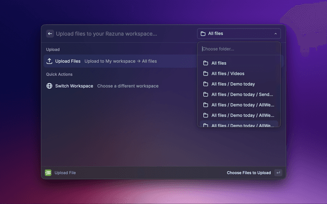 A Raycast extension for managing files in your Razuna workspace.