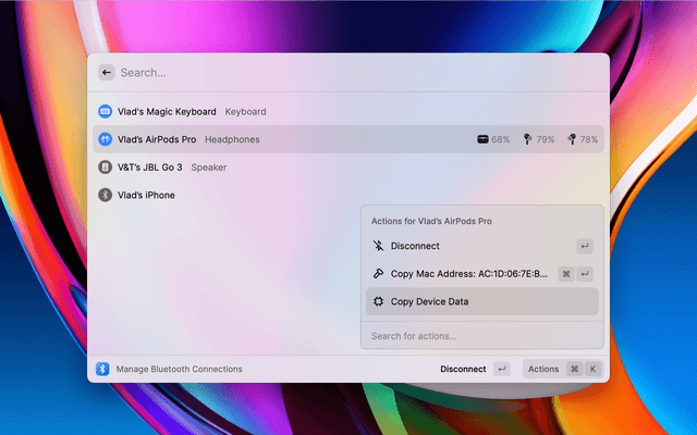 Manage Bluetooth connections in Raycast.