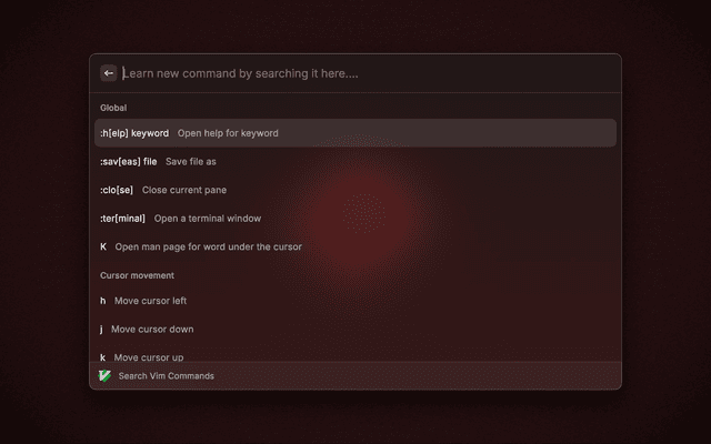Learn vim commands without leaving your window.