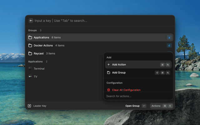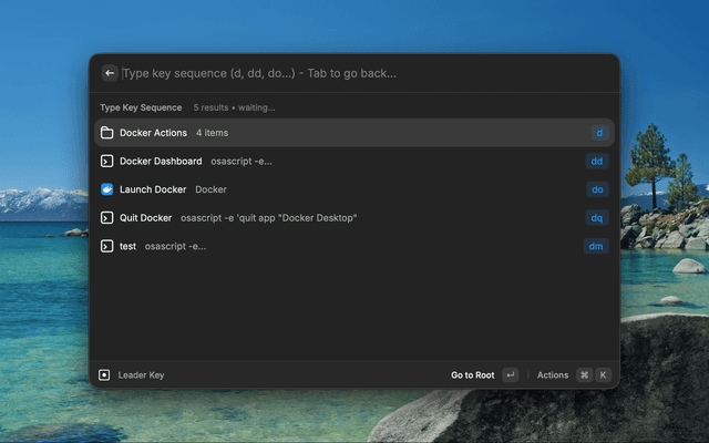 While this extension brings the leader key concept to Raycast with additional features like real-time navigation and Raycast-specific integrations, it maintains the same hierarchical philosophy that makes mikker's original app so effective.
