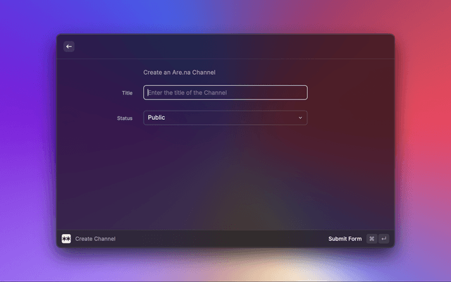 Create new channels directly to your Are.na account using the Create Are.na Channel command.