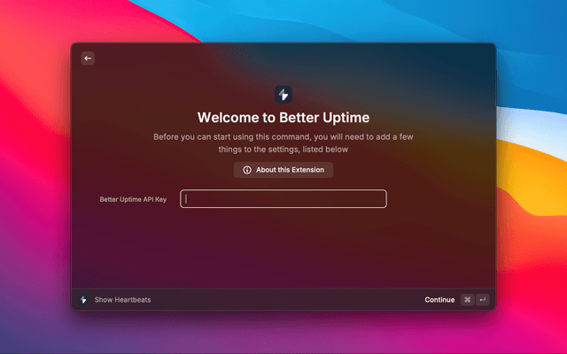 In order to make use of this extension, you'll need to enter the API key available within the Better Uptime dashboard.