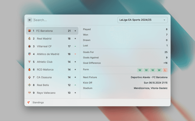 A comprehensive extension for tracking La Liga matches, standings, and club information.