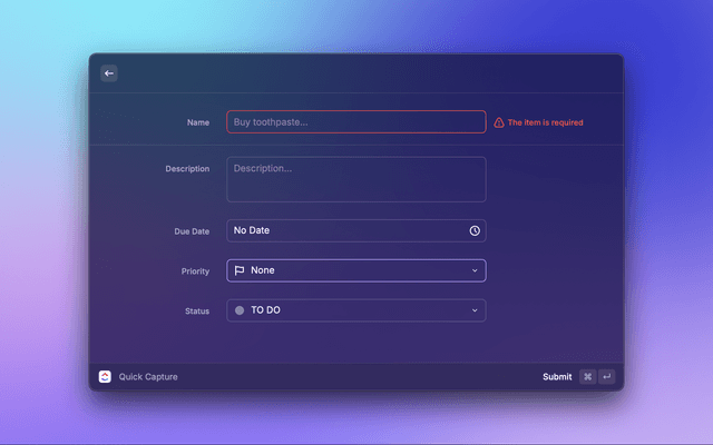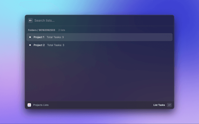 • Create folders, lists and tasks from Raycast
