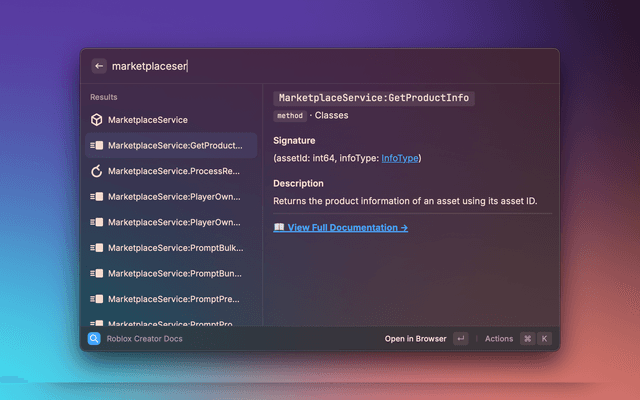 Fast look-up and search for Roblox Creator Documentation directly from Raycast.