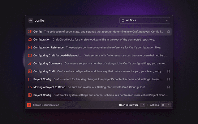 Search the official Craft CMS documentation, knowledge base, glossary, and plugin store.