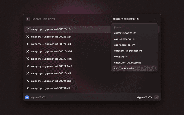 This Raycast extension allows you to manage Google Cloud Run services directly from your Raycast dashboard. With this extension, you can easily migrate traffic for your Cloud Run services to specific revisions, streamlining your deployment workflows.