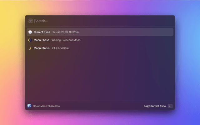 Show details about the current moon phase — and also in your menu bar.