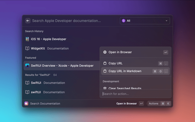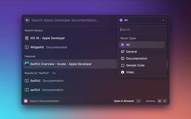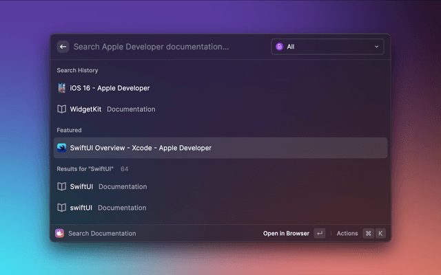 Search from the Apple Developer Documentations