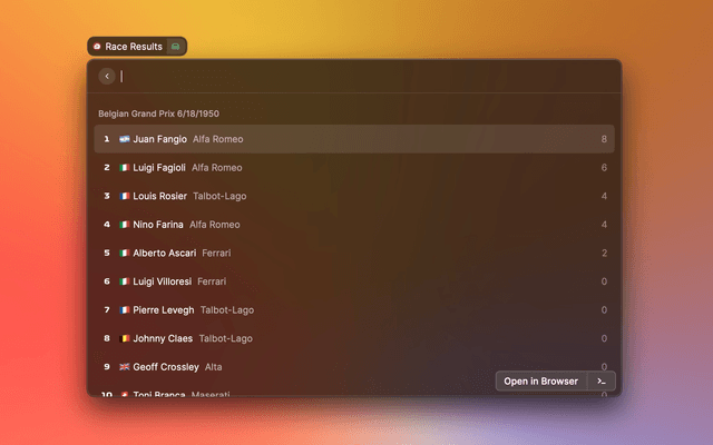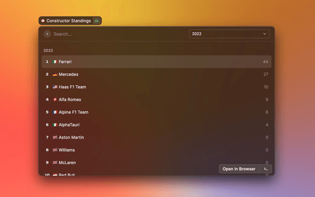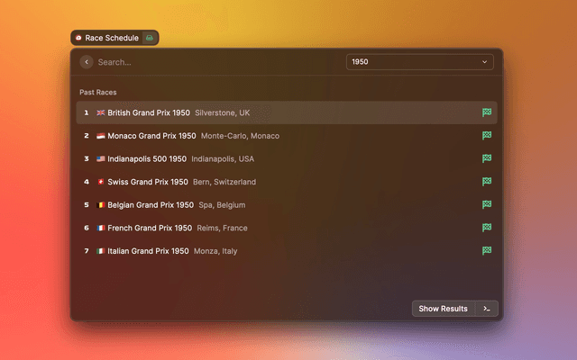 Formula 1 date and information for Raycast.