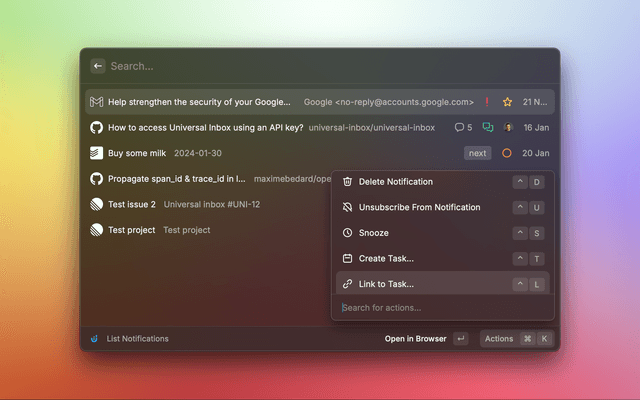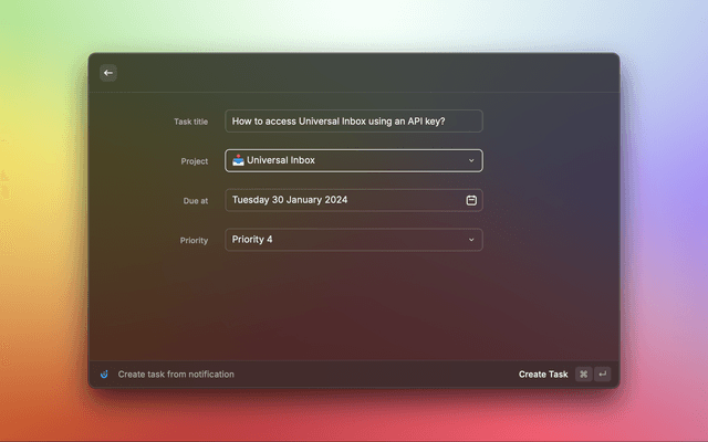 To use the Universal Inbox extension for Raycast, you will need to configure an instance URL and an API key.