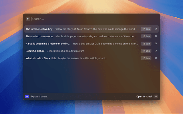 Strapi extension for Raycast. Explore your Strapi content & media all from within Raycast.