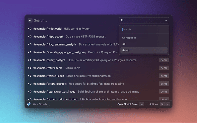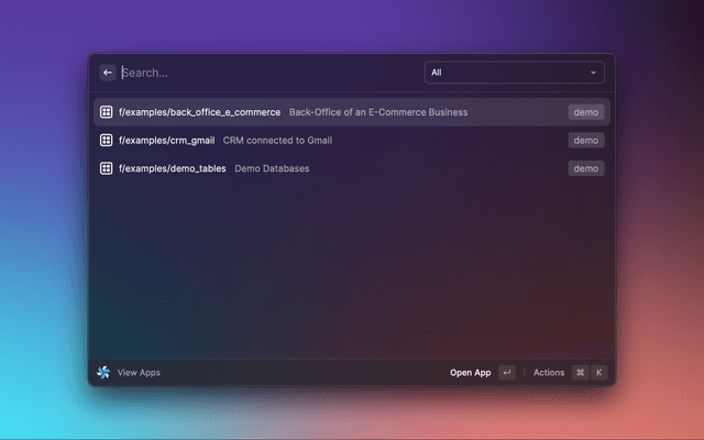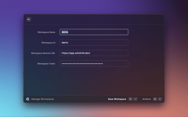 - Open Flow (CMD + Enter): Open the flow page in the Windmill web interface.