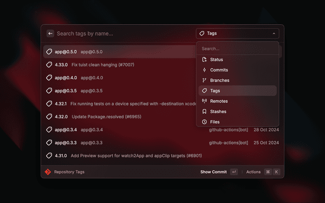 β†ͺ️ Checkout, cherry-pick, rebase, reset, revert, and merge on commit, branch, tag