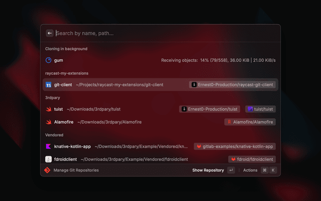 β + 1 to go to Statusβ + 2 to go to Commitsβ + 3 to go to Branchesβ + 4 to go to Tagsβ + 5 to go to Remotesβ + 6 to go to Stashesβ + 0 to go to FilesYou can create a Quicklink to open a specific repository without needing to select it in the Manage Git Repositories list.
