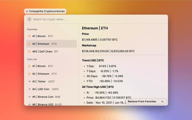 A Raycast extension that lets you easily check your favourite Coins on Coinpaprika.