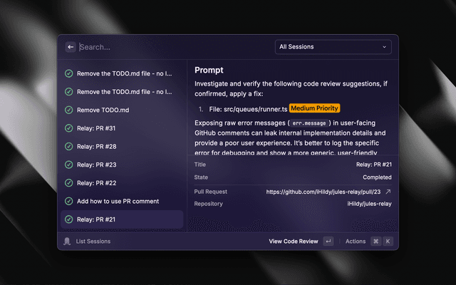 • Launch & Manage: Start new Google Jules sessions from anywhere and manage them in a unified view.