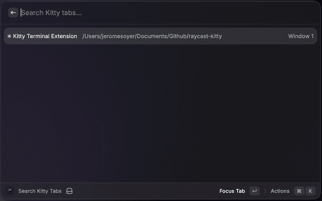 Control the Kitty terminal emulator directly from Raycast via its remote control protocol.
