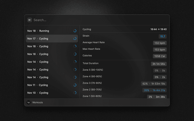 Displays your WHOOP overview.