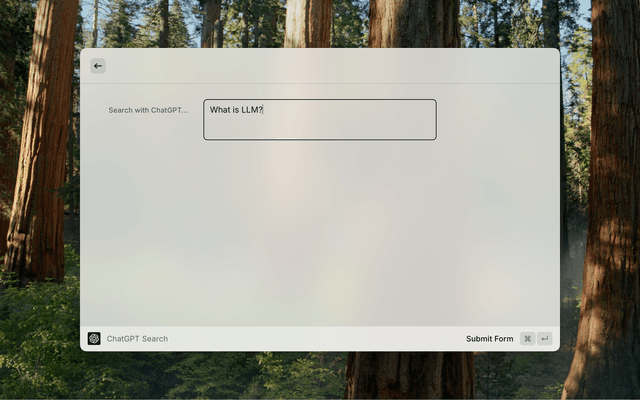 Initiate ChatGPT Search (aka SearchGPT) from within Raycast https://openai.com/index/introducing-chatgpt-search/