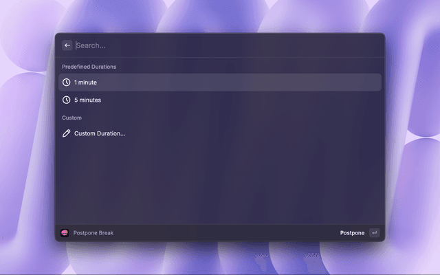 Control the LookAway macOS app using Raycast.
