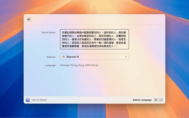 Detect languages through Raycast AI or third-party language detectors