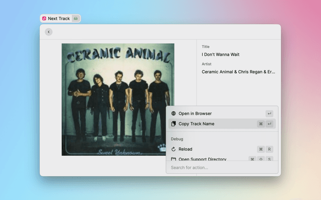 Spotify's most common features, now at your fingertips. Search for music and podcasts, browse your library, and control the playback. Glance at what's currently playing directly from the menu bar.