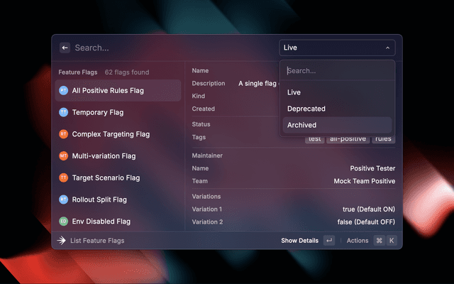• ⌘ + ↵ Copy feature flag key to clipboard