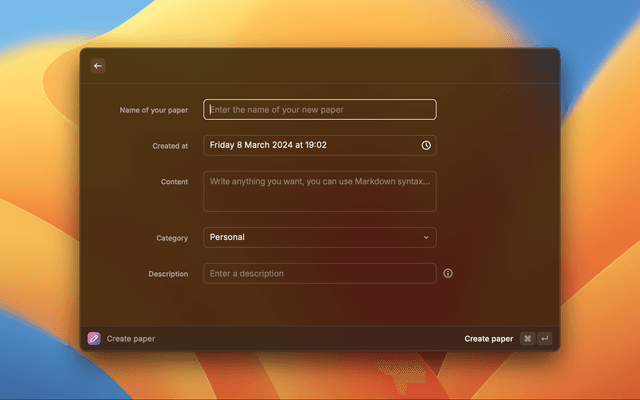 Create and organize your ideas, work, etc., in Markdown files by category.