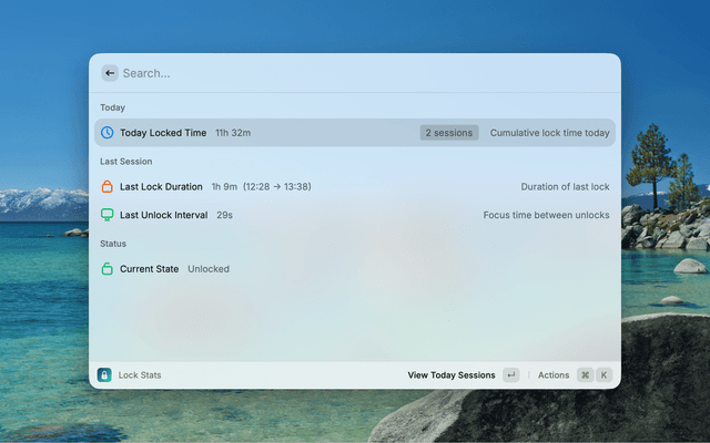 - Today Locked Time — Cumulative lock duration for today, press Enter to view session breakdown