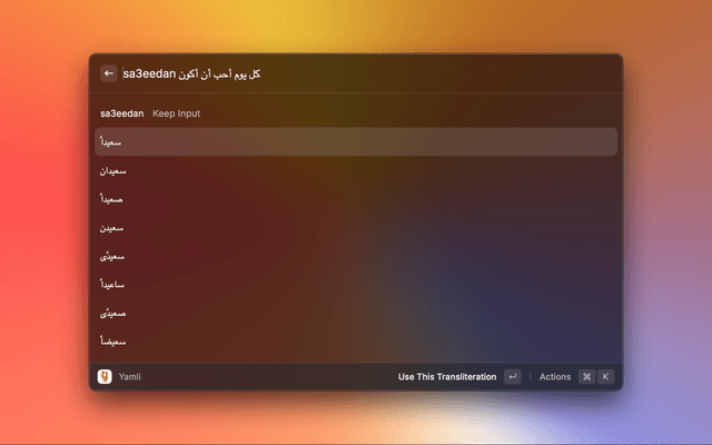 Convert English-Arabic transliteration to Arabic text using Yamli