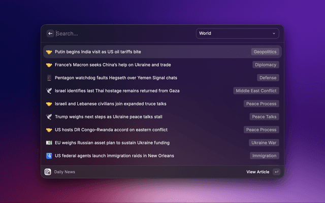 Read and explore Kagi News articles and sources seamlessly in Raycast.