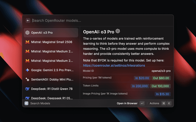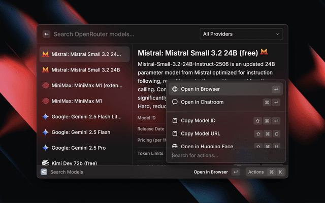 • Quickly search for models on OpenRouter