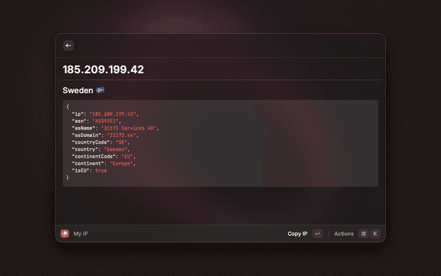 A Raycast extension to use ipinfo.io's API to get information about IP addresses.
