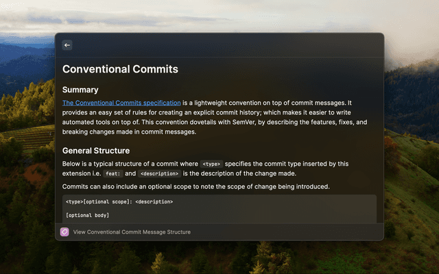 A Raycast extension designed to provide a reference list of the possible Conventional Commit prefixes enriched by the Angular Convention which can be inserted into the active window.