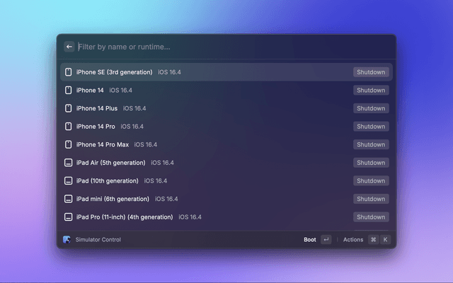 Extension to control your Apple platform simulators.