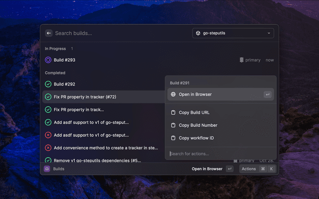 Work with Bitrise builds and workflows, search builds and apps.