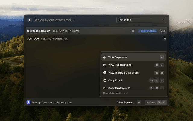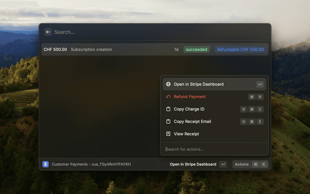 Manage multiple Stripe accounts with different environments seamlessly from Raycast!