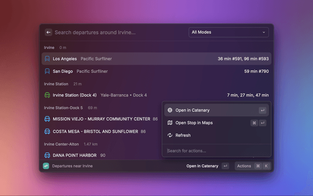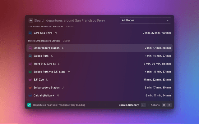 - Filters: Filter departures by mode (Bus, Rail, Metro, etc.).