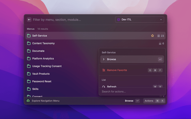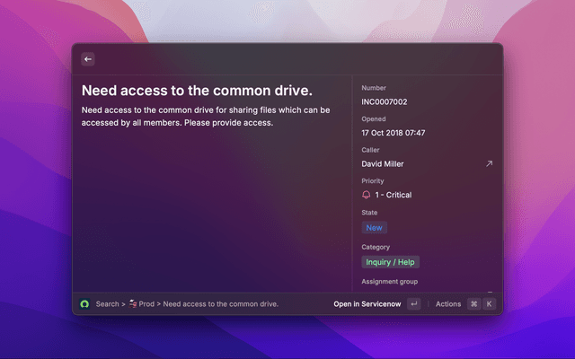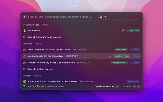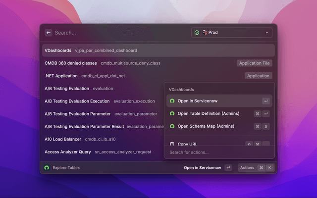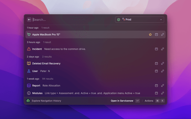 The ServiceNow Raycast Extension allows you to easily search and explore content across your ServiceNow instances.