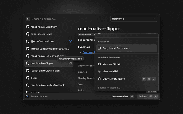 This extension uses data from the React Native Directory project, which is maintained by the React Native community.