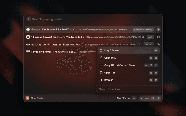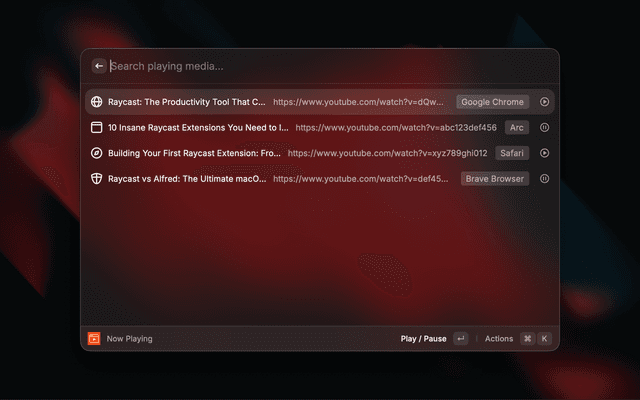 Recommended: Assign a global hotkey (e.g., ⌥ + Space) for instant control without opening Raycast.