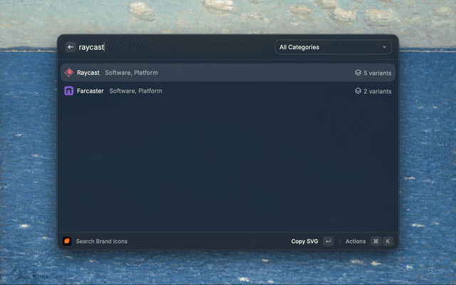 Search, preview, and copy 4,000+ brand SVG icons from thesvg.org directly in Raycast.