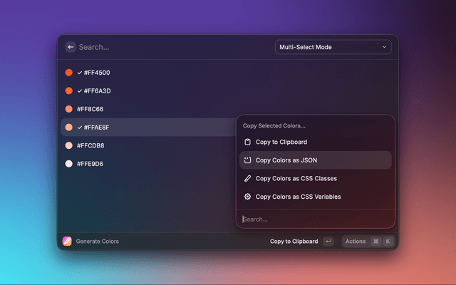 5. Cross-App Compatibility: Thanks to our API, the Color Picker can seamlessly interact with other Raycast extensions.